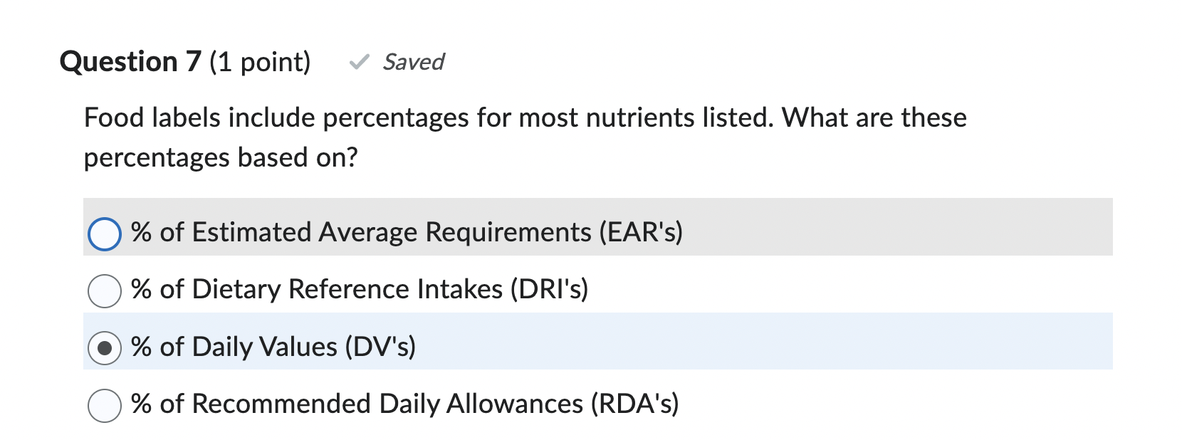 Nutrient requirements that are listed as percentages on food labels